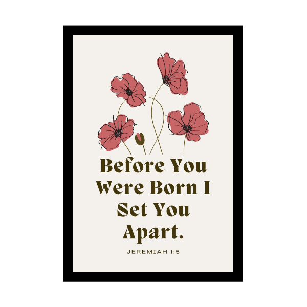 - An eye--catching home decor with an elegant solid wood frame will impress your guests and family deeply. The inspirational word “Before You Were Born I Set You Apart.” - Jeremiah 1:5 in the Bible inspires you to face life positively and bless you.