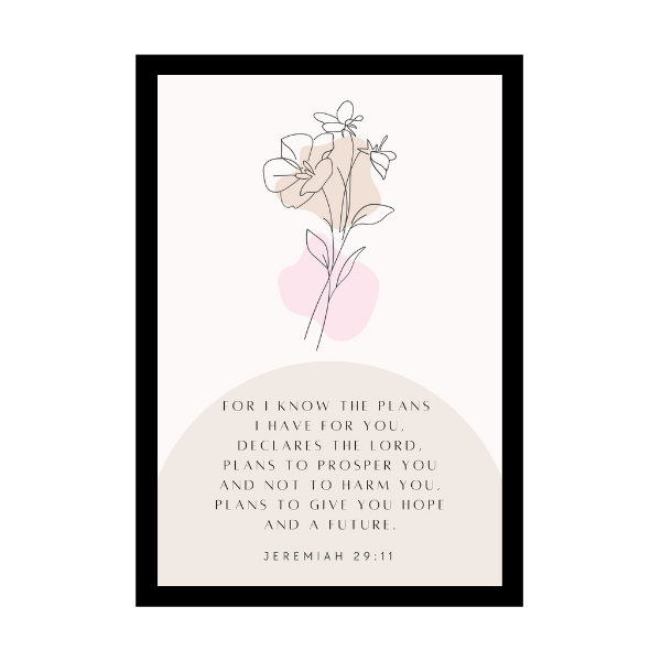 • An eye--catching home decor with an elegant solid wood frame will impress your guests and family deeply. The inspirational word   “For I know the plans I have for you,” declares the LORD, “plans to prosper you and not to harm you, plans to give you hope and a future.” - Jeremiah 29:11  in the Bible inspires you to face life positively and bless you.