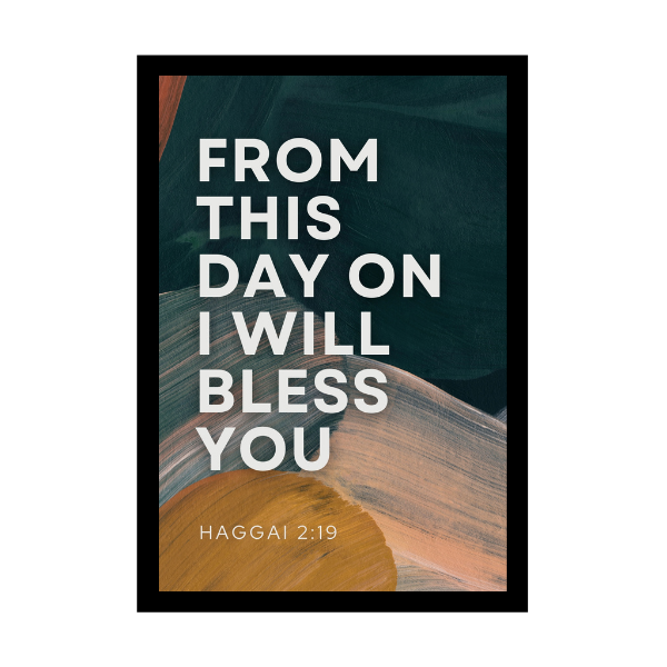 - An eye--catching home decor with an elegant solid wood frame will impress your guests and family deeply. The inspirational word “From This Day On I Will Bless You”- Haggai 2:19 in the Bible inspires you to face life positively and bless you.