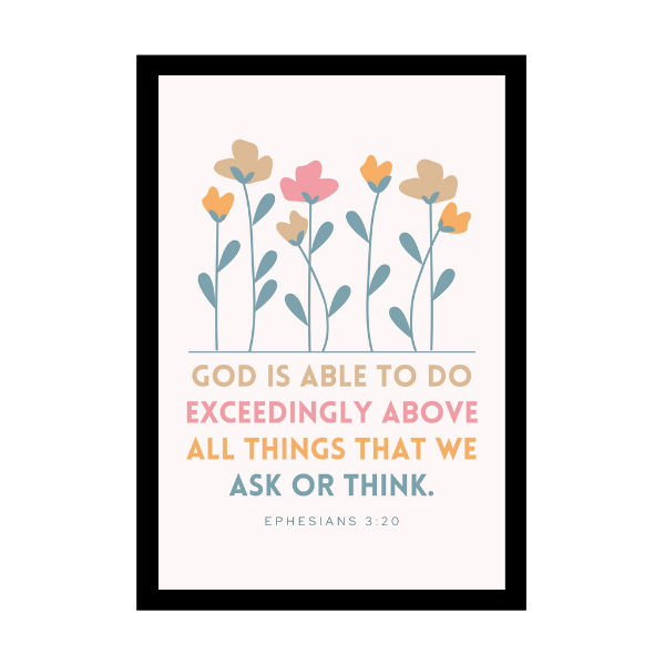 - An eye--catching home decor with an elegant solid wood frame will impress your guests and family deeply. The inspirational word “God is able to do exceedingly above all things that we ask or think”. - Ephesians 3:20 in the Bible inspires you to face life positively and bless you.