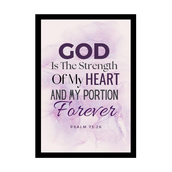 - An eye--catching home decor with an elegant solid wood frame will impress your guests and family deeply. The inspirational word “God Is The Strength Of My Heart And My Portion Forever”. - Psalm 73:26 in the Bible inspires you to face life positively and bless you.