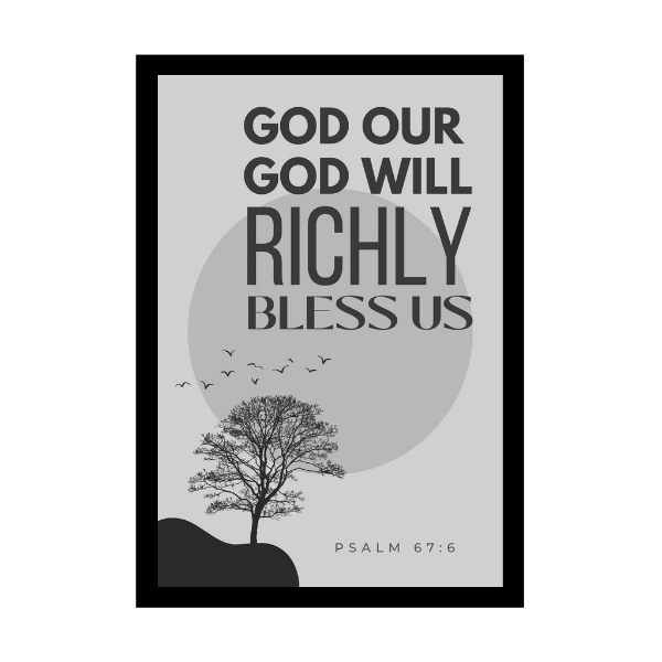 - An eye--catching home decor with an elegant solid wood frame will impress your guests and family deeply. The inspirational word “God Our God Will Richly Bless Us” -Psalm 67:6 in the Bible inspires you to face life positively and bless you.
