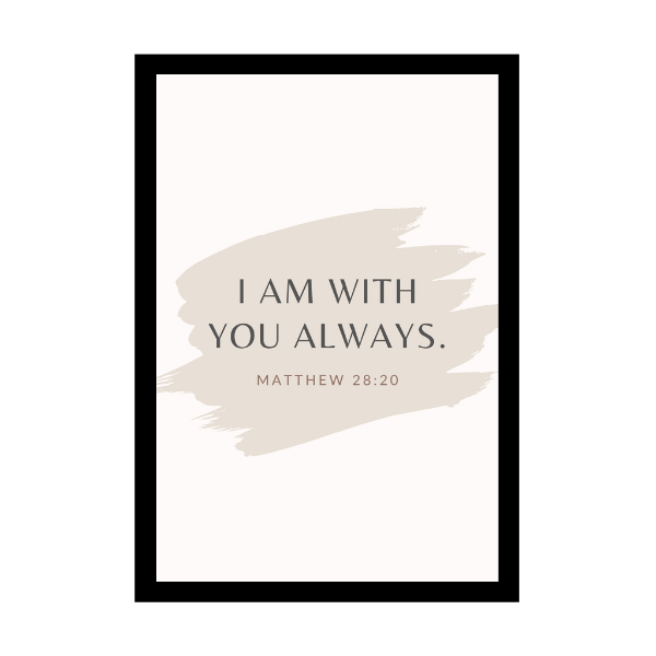 - An eye--catching home decor with an elegant solid wood frame will impress your guests and family deeply. The inspirational word “I Am With You Always.”- Matthew 28:20 in the Bible inspires you to face life positively and bless you.