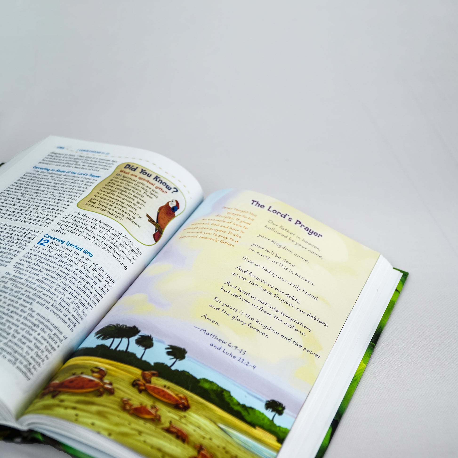 This Bible contains interesting Biblical facts that inspire the kids’ faith as they read about God’s grace and love.