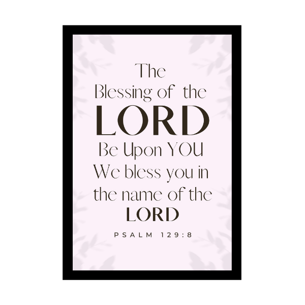- An eye--catching home decor with an elegant solid wood frame will impress your guests and family deeply. The inspirational word “The blessing of the LORD be upon you: we bless you in the name of the LORD”. - Psalm 129:8 in the Bible inspires you to face life positively and bless you.