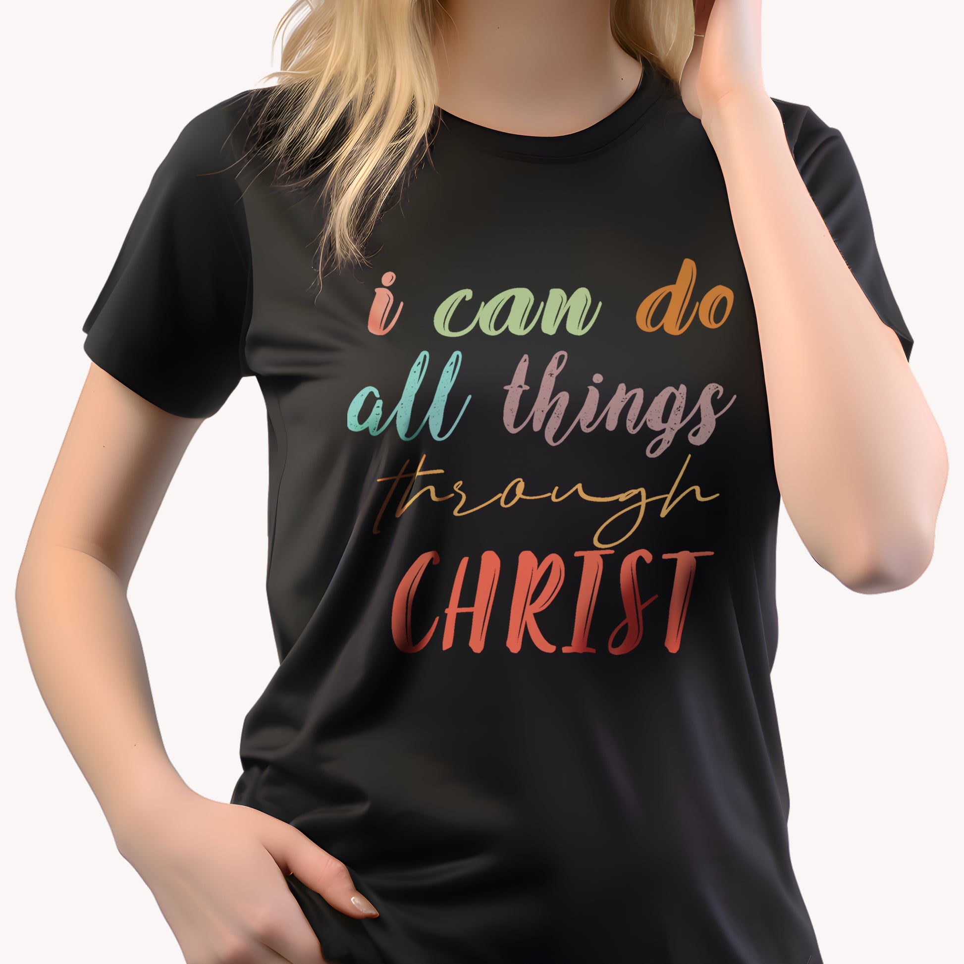- Inspiring Message: The “i can do all things through Christ” print on the front of the t-shirt carries a profound message of spiritual connection and divine guidance, making it a cherished addition to your wardrobe.