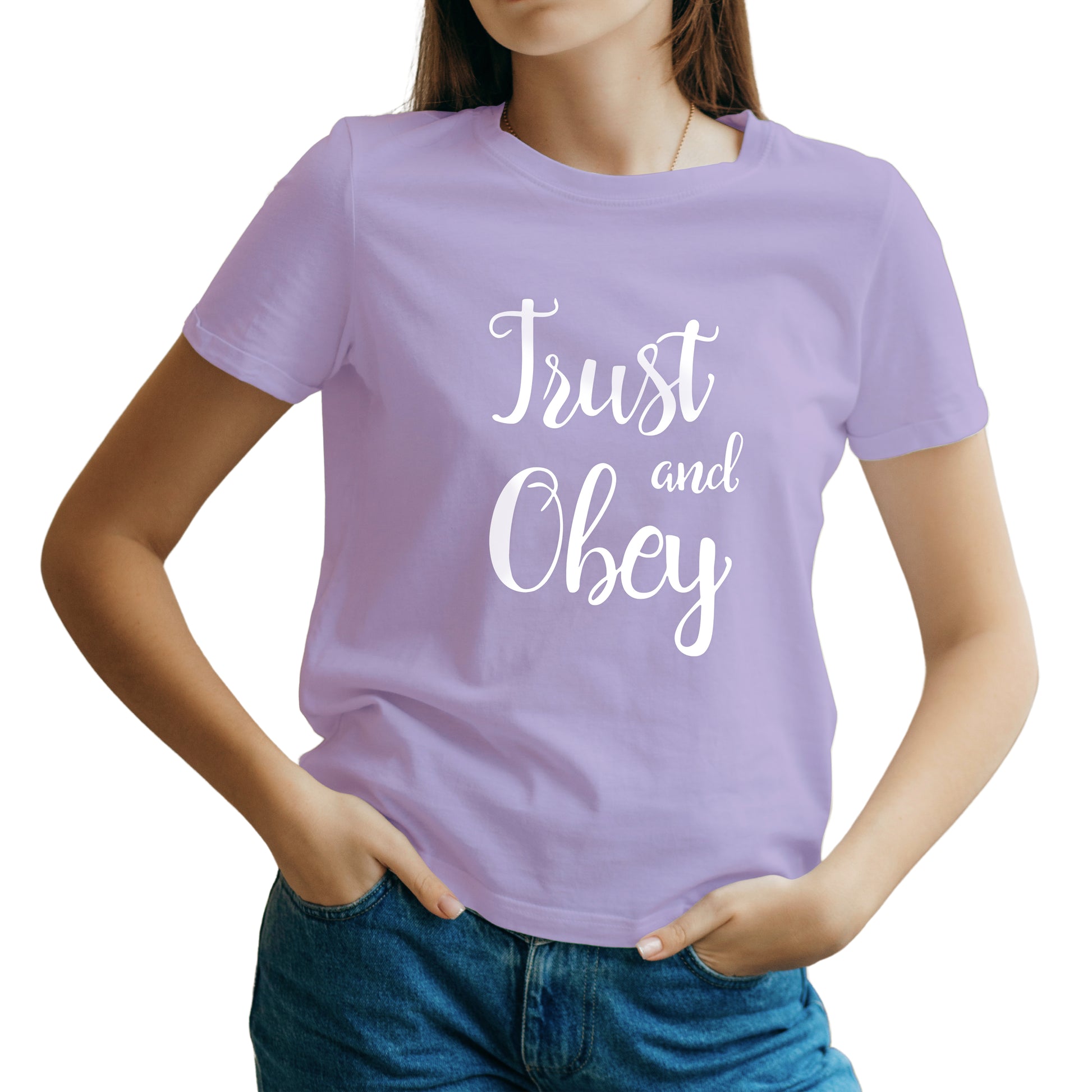 - Inspiring Message: The “Trust and Obey” print on the front of the t-shirt carries a profound message of spiritual connection and divine guidance, making it a cherished addition to your wardrobe.